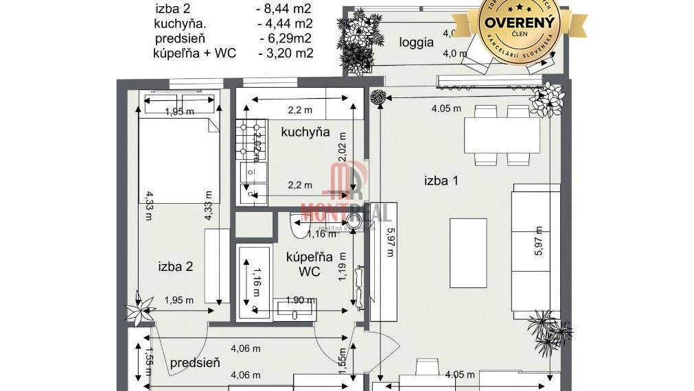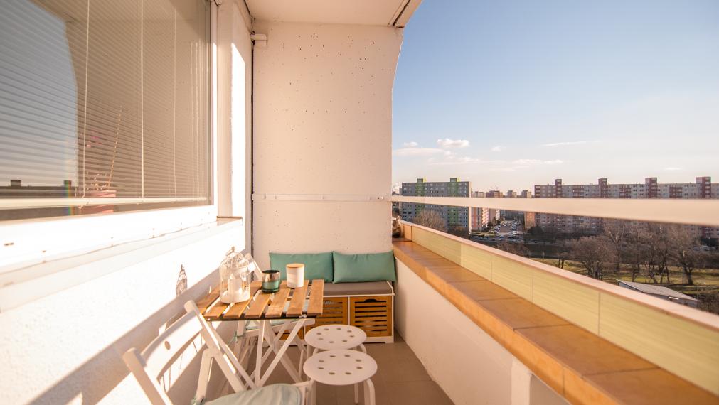 A fully furnished and air-conditioned 2-room apartment with a loggia is offered for sale. It is located on the 8th floor of a 12-story residential building on Vavilova Street in the Petržalka district. The total area of the apartment is 53.44 m², including the cellar and loggia.