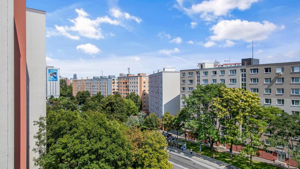 The apartment is located in a reconstructed panel building on the 7th floor of 12, featuring an excellent layout and a total living area of 71.12 m² + 2.6 m² loggia. A cellar space also belongs to the apartment.