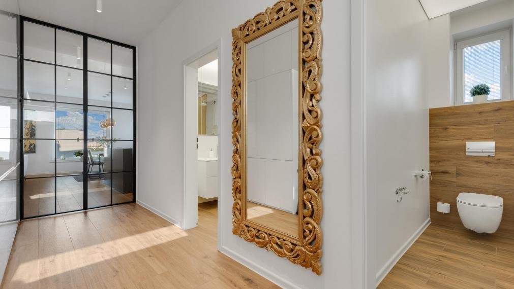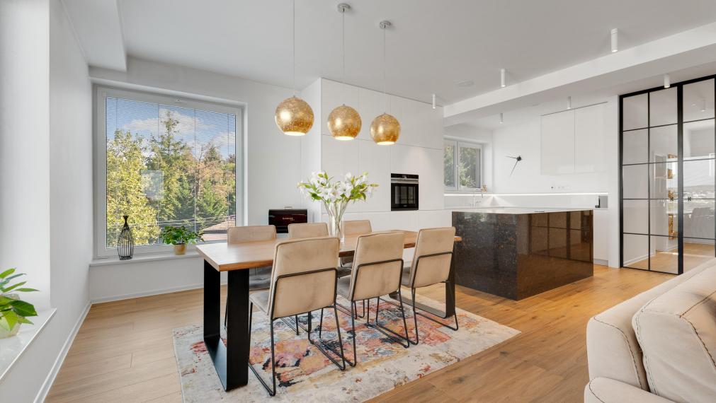 FinReal go exclusively offers for sale an architect-designed, high-quality, fully furnished 3-room apartment with a walk-in closet in a lucrative location in Bôrik in a family house with only 3 apartments. An exceptional location near the city center, in a quiet area with family houses with a pleasant view from the hill to greenery and the Danube.