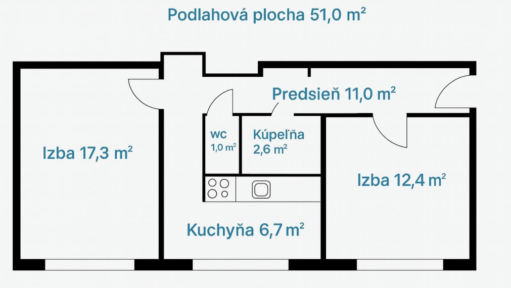 Apartment 2-room, 51 sqm, comfortable and practical living space, Dúbravka, Bratislava