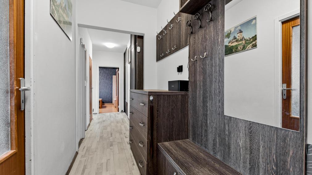 The apartment is very well maintained and ready for immediate occupancy. A complete reconstruction of the electrical installation was carried out throughout the apartment (approx. 5 years ago), and a revision report is available. The risers in the apartment building have already been replaced. The apartment's orientation is east. The apartment also includes a cellar compartment on the ground floor and a stroller room. ADLO security doors, 3rd security class with 9 locking points. The apartment building is on a dead-end street with a pleasant park in the courtyard, very close to the newly reconstructed sports and recreation area Adlerka.