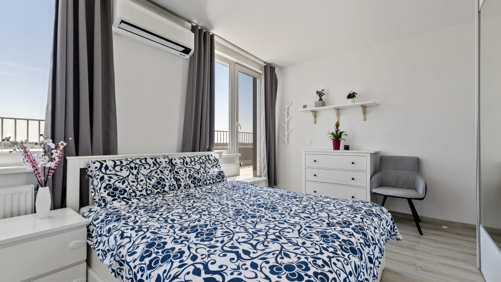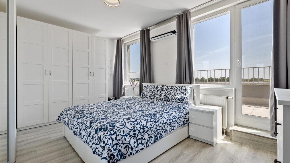 - Bedroom with access to the SE terrace, sunrise view and Malý Raj, rolldoor wardrobe + PAX wardrobes