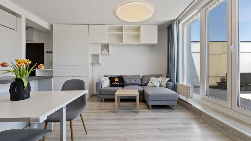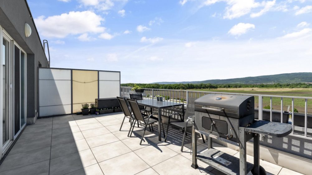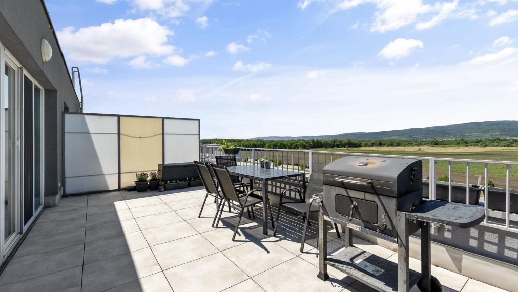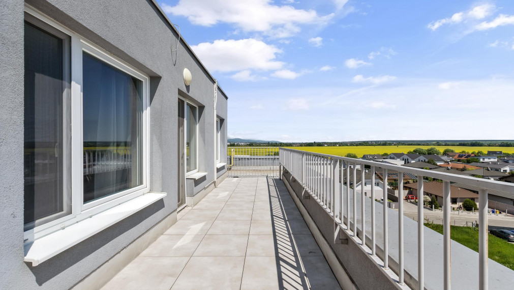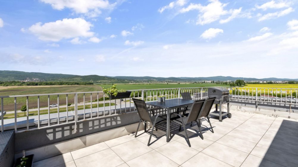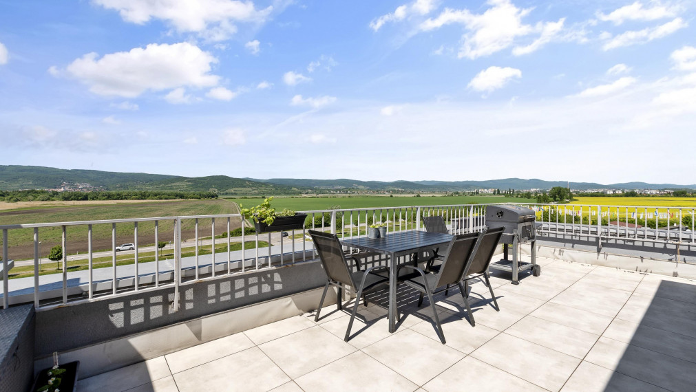 RESERVED. A newly built 4-room apartment with 2 spacious terraces, a garage parking space, and a cellar is offered for sale in the sought-after location of Slovenský Grob - Malý Raj, Pezinok district.