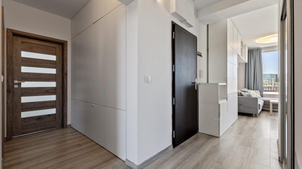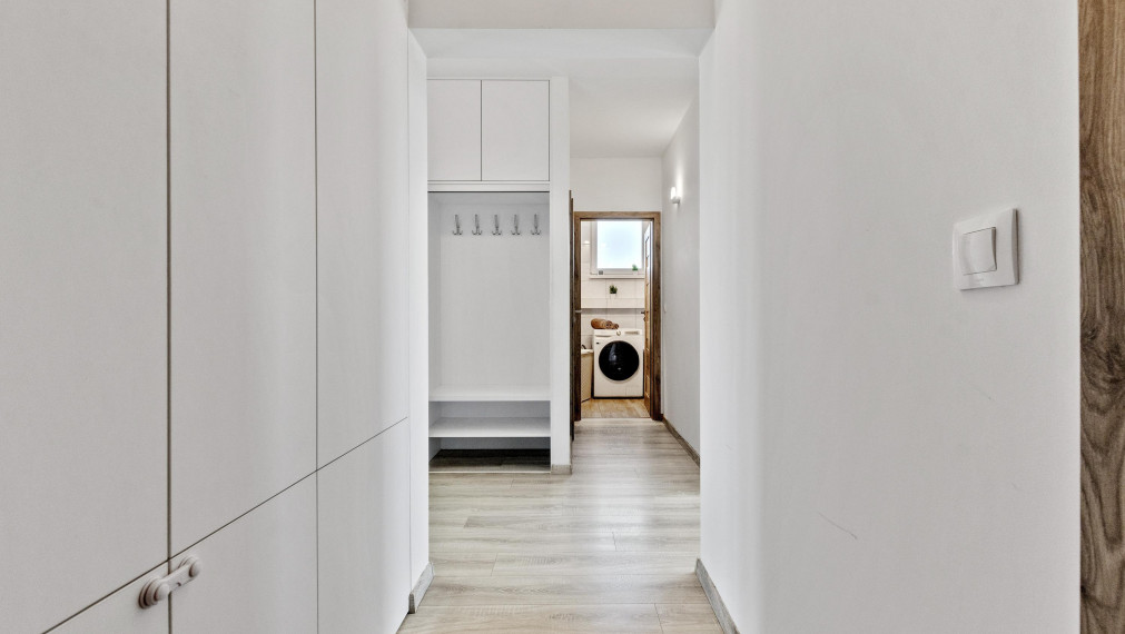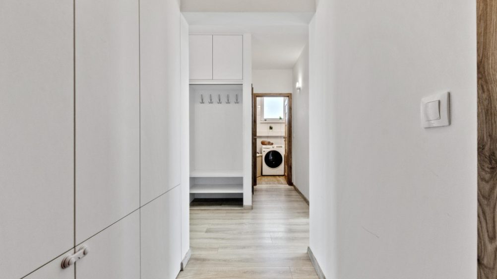 - Entrance hall with rolldoor wardrobe and wall hangers