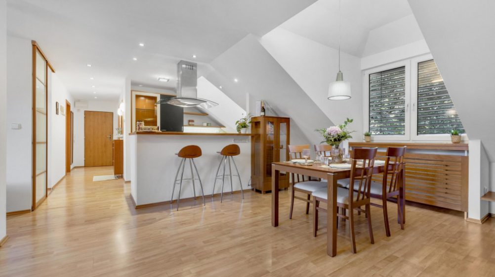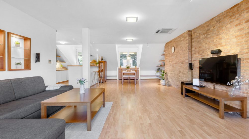 This spacious attic apartment with excellent layout and atmosphere is an ideal solution for those who desire an unconventional, airy, and bright space, an excellent location, and full civic amenities literally under the windows.