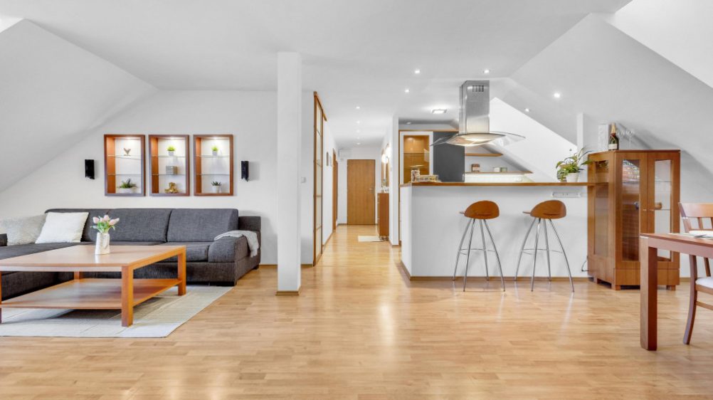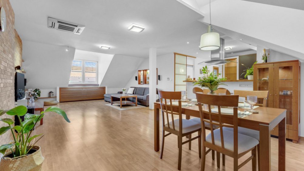 FinReal go exclusively offers for sale a spacious 3-room attic apartment with atmosphere, views, and an exceptional location – Súťažná, Nivy – 500 bytov.