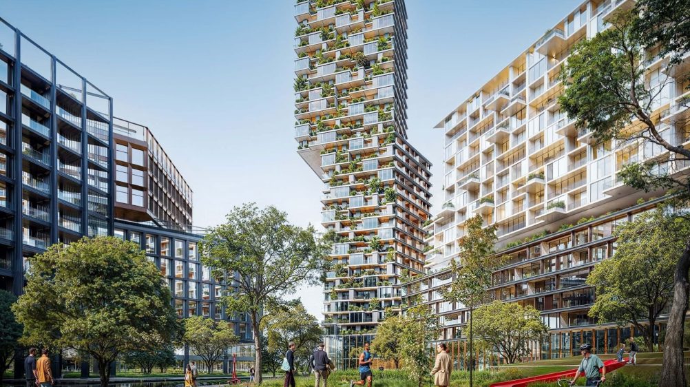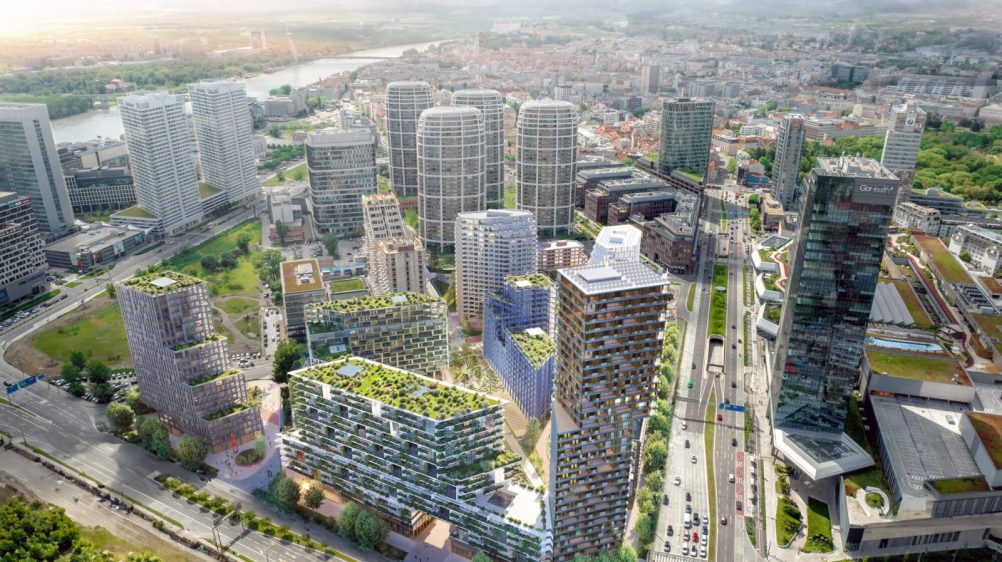 An extensive multifunctional project will be built on the site of the previously planned development Mlynské Nivy Košická by HB Reavis. After its takeover by the current developer, an international urban planning and architectural competition was announced, and a new solution was selected, which, in addition to offices, also includes housing. The winning concept was named Urban Oasis, which refers to the presence of a park in the courtyard. Part of the project is also a pair of office buildings, Chalupkova Offices, which were taken over from Mlynské Nivy Košická. The project is subject to a change in the zoning plan, which anticipates an increase in the proportion of housing and an increase in the height dominance. The table presents the considered height of the tower after the change in regulation.