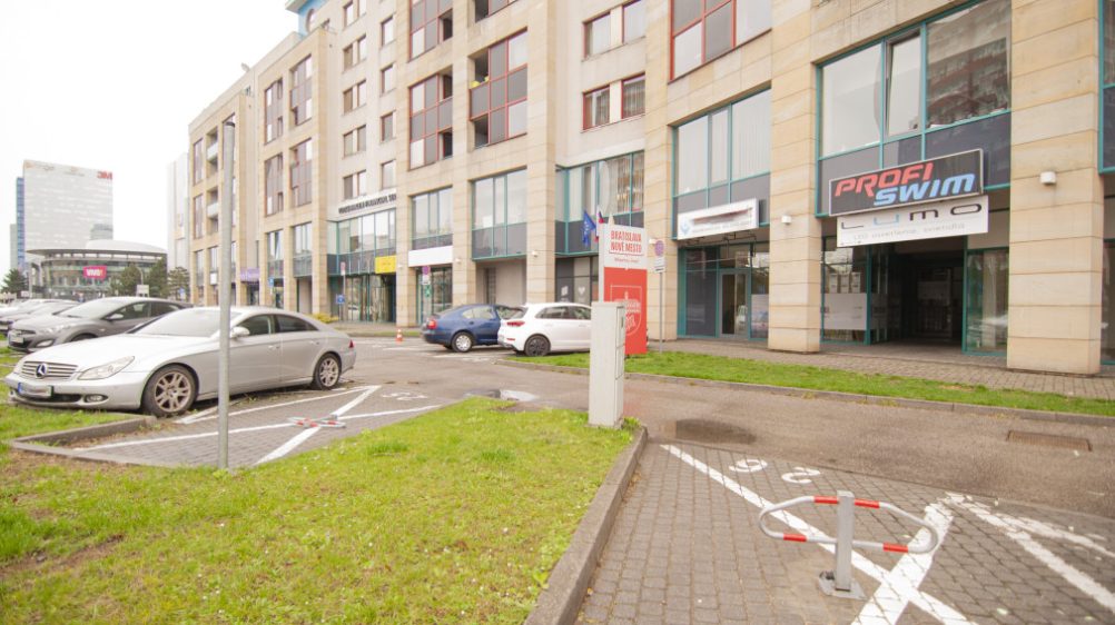 Large-format windows and the entrance are situated directly facing Vajnorská ulica.