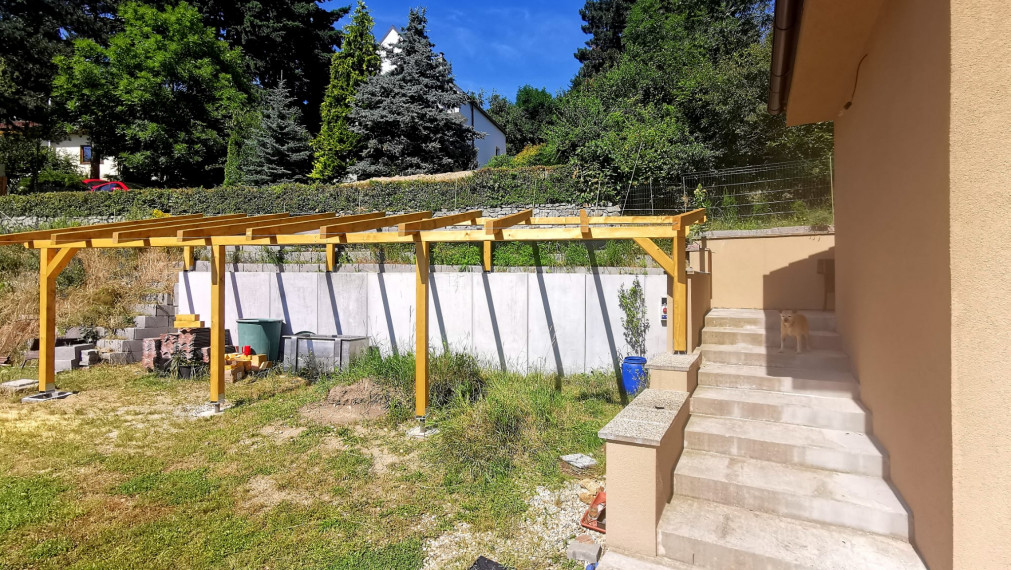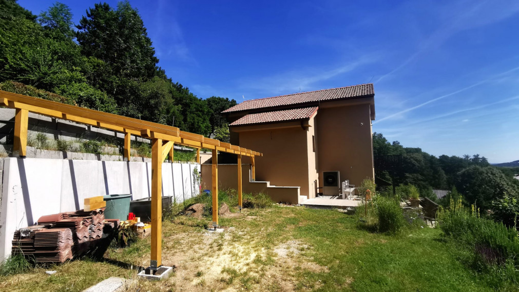 The house has a smart home function as appliances are connected to an application and can be controlled remotely. The windows have sturdy aluminum frames. There is pre-installation for photovoltaics. Slope reinforcement (cascade solution): L-concrete reinforced blocks, approx. 1,000 slope concrete blocks, 400 grass-paving blocks.