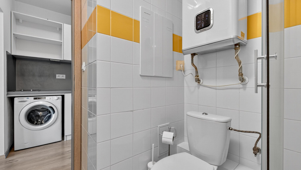 For sale, a bright, furnished studio apartment in an 8-year-old new building in Podunajských Biskupiciach - Bratislava. It is also suitable as an investment. The apartment consists of one living room and ancillary facilities. The ancillary facilities of the apartment include an entrance hall, kitchen, toilet, and shower. The usable floor area of the apartment is 21.09 m², with a cellar of 3.84 m², which also has a window. The apartment is located on the 2nd floor out of 4 with an elevator in the building. Without a balcony and parking space. The apartment's equipment consists of: entrance and interior doors, floating floors, kitchen unit, electric hob, furniture, air conditioning, washing machine with dryer. The apartment is fully furnished and oriented to the west side. The location provides complete civic amenities (shops, services, restaurants, cafes, school, kindergarten, public transport network). In close proximity there is a shopping center, a children's playground, and opportunities for various sports activities and walks. Close to the city center, yet in nature. Administrator fee 80€, total costs for 1 person 130€. The building has an energy certificate B.
