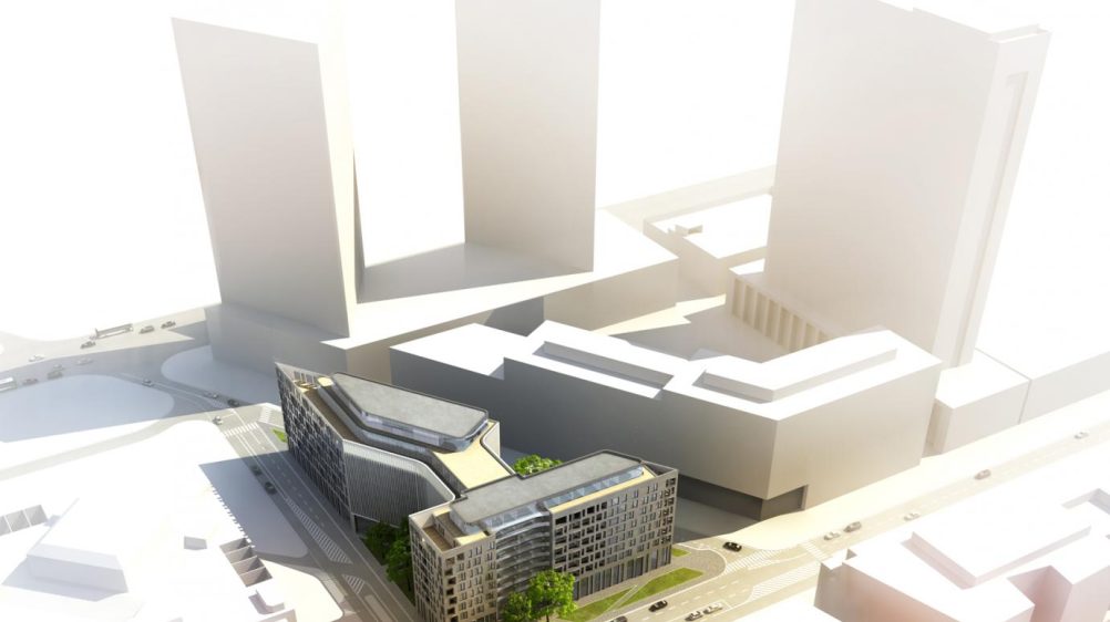 Mixed-use complex, new city center by nábreží Dunaja, Pribinovej ulice