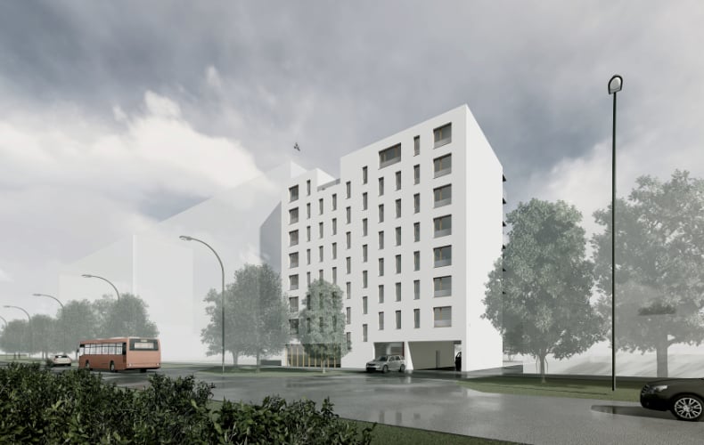 A smaller mixed-use project will build on the surrounding changing development and level it in terms of mass. It will replace an older building of the former hygiene station. The original owner, Graduent s.r.o., sold the project to the developer of the neighboring Green Atrium.