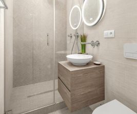 The apartment consists of an entrance hall, a bathroom with a shower cubicle and a toilet, a living room connected to the kitchen, a lamellar wall separated sleeping area with a spacious wardrobe and a 3.6m2 balcony.