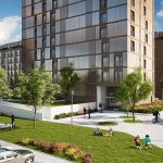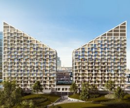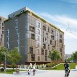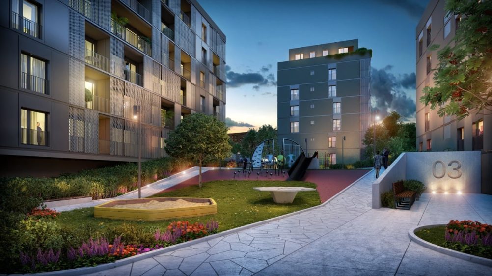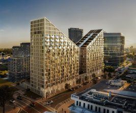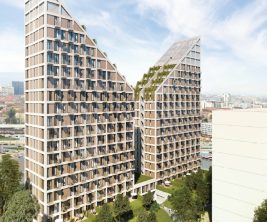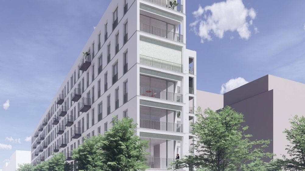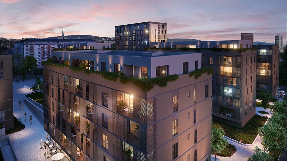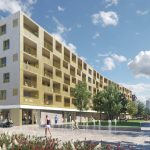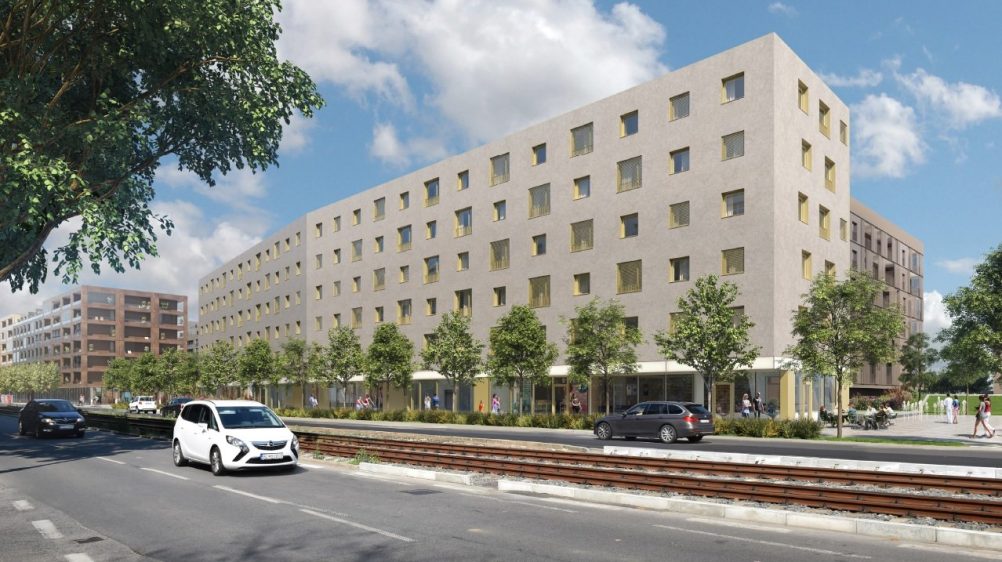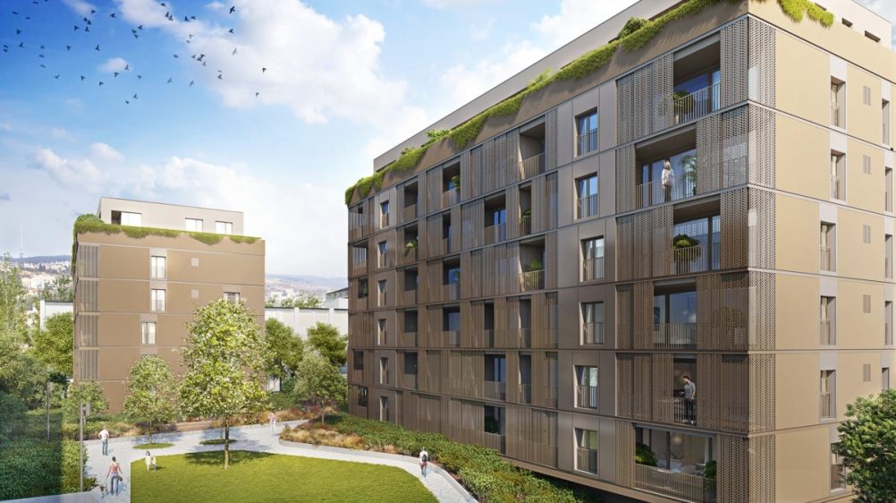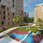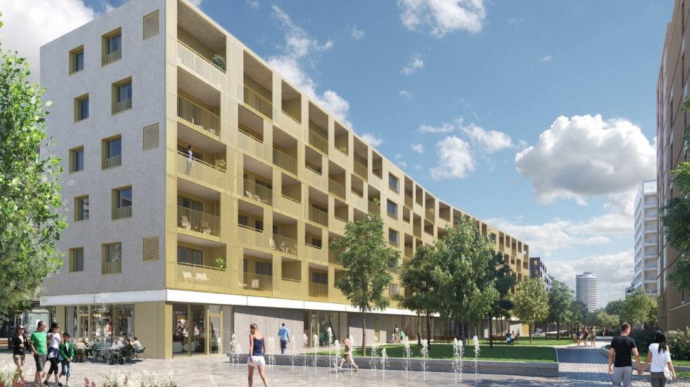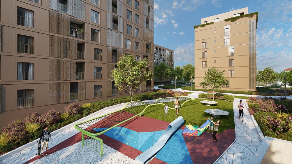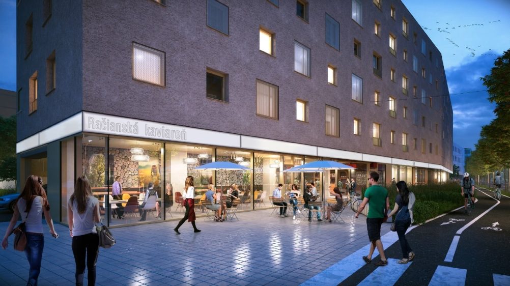 Residential project in a transforming post-industrial area along Račianska street. The result of an architectural competition. The first two stages have been completed, the third was launched after a long permitting process. Originally, a parking garage was considered for this location.