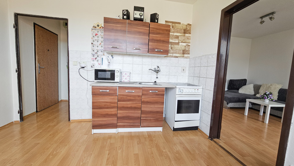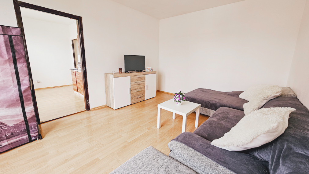 FinReal go offers for sale a sunny 1-room apartment with a beautiful view in a quiet, peaceful part of Tlmače. It is located on the 3rd floor in an insulated apartment building without an elevator. The apartment is sold partially furnished and is available immediately.