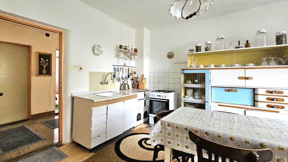 A single-story brick house with a partial cellar is offered for sale in a quiet part of the popular village Kalná nad Hronom, just a 9-minute drive from the town of Levice. The house is located on a fenced plot of 433 m².