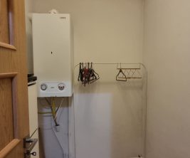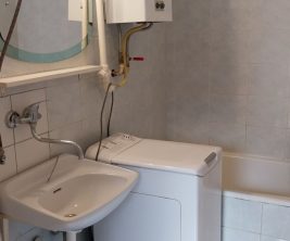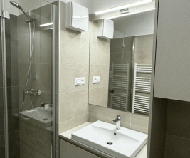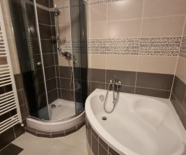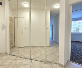 - Layout: entrance hall with custom-made built-in storage space with maximum utilization, separately separated WC with washbasin and separate bathroom with a walk-in shower, custom-made built-in kitchen unit with backlighting and built-in appliances from Whirpool, living room with access to the loggia, separate bedroom with plenty of built-in storage space