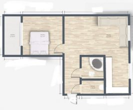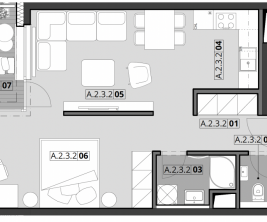 - Interior of the apartment 45.24 m2, loggia 4.49 m2, cellar vault - 2.29m2
