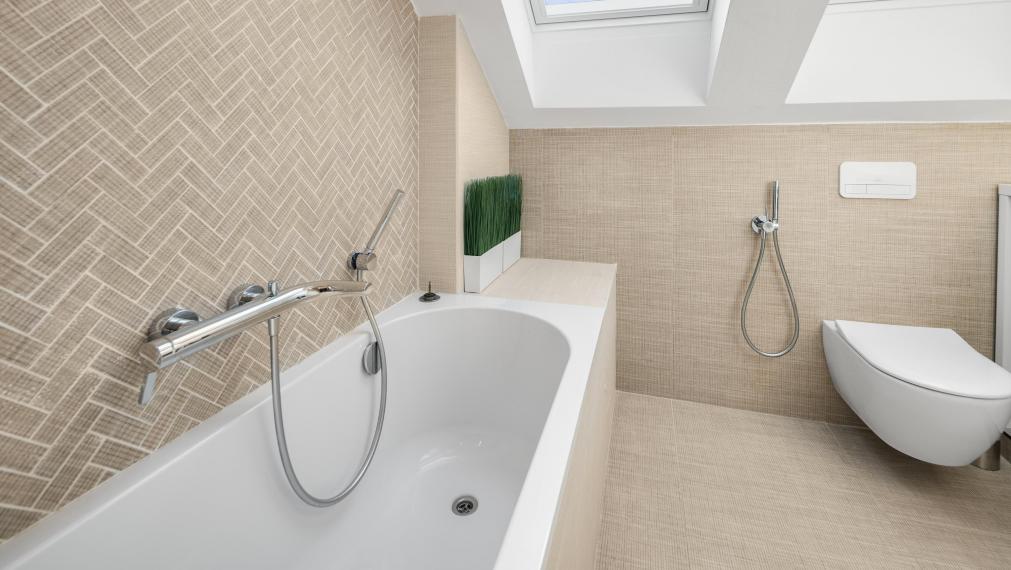 - orientation to two cardinal directions, beautiful, bright space with Velux brand roof windows with shading