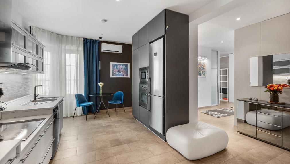 - the total floor area of the apartment is 160m2 + 3m2 loggia on the ground floor + 20m2 spacious terrace on the upper floor facing a quiet courtyard - no direct neighbors - a feeling of complete privacy in the city center!