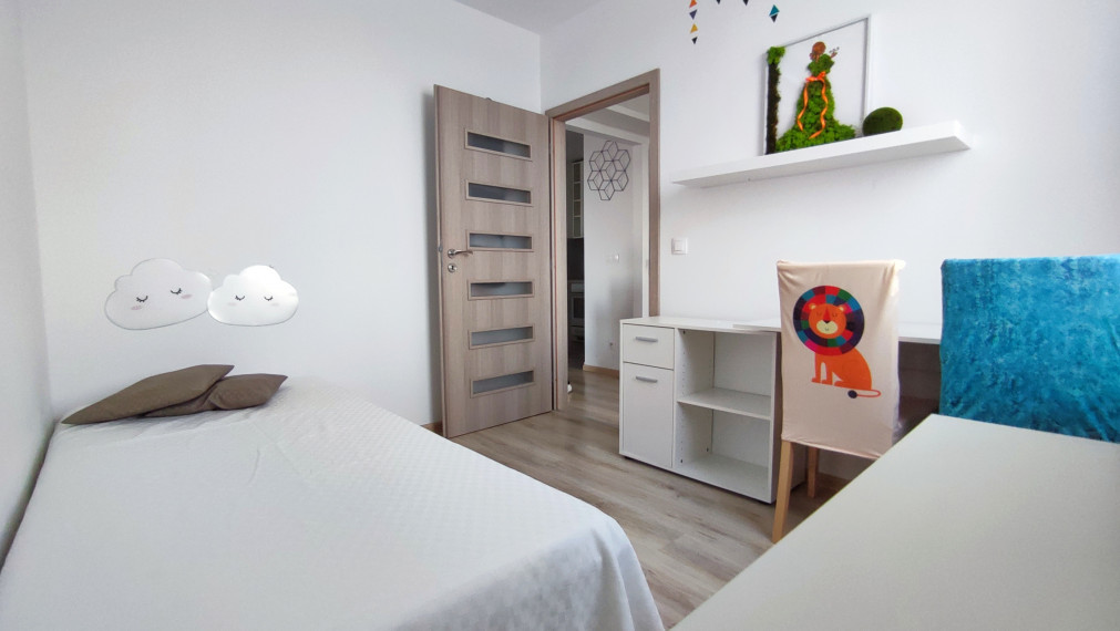 - Children's room: bed, 2 wardrobes, shelves, table, chairs