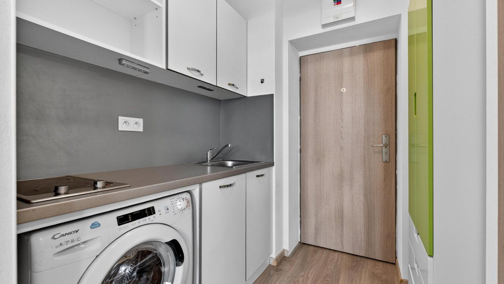 For sale, a bright, furnished studio apartment in an 8-year-old new building in Podunajských Biskupiciach - Bratislava. It is also suitable as an investment. The apartment consists of one living room and ancillary facilities. The apartment's ancillary facilities include an entrance hall, kitchen, toilet, and shower. The usable floor area of the apartment is 21.09 m2 with a cellar of 3.84 m2, which also has a window. The apartment is located on the 2nd floor out of 4 with an elevator in the building. Without a balcony and parking space. The apartment's equipment includes: entrance and interior doors, floating floors, kitchen unit, electric hob, furniture, air conditioning, washing machine with dryer. The apartment is fully furnished and oriented to the west side. The locality provides complete civic amenities (shops, services, restaurants, cafes, school, kindergarten, public transport network). In close proximity there is a shopping center, a children's playground, and opportunities for various sports activities and walks. Close to the center yet in nature. The building has an energy certificate B.