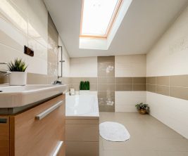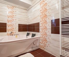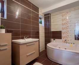 חדר רחצה עם אמבטיה פינתי.