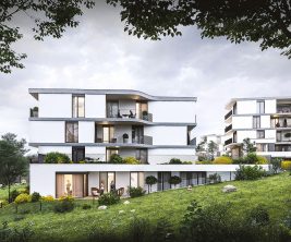 Площадь квартиры 105,66 м2, терраса 11,74 м2 и балкон 8,20 м2. К квартире также относится собственный сад площадью 147,65 м2. В сад есть выход из каждой комнаты, а также из гостиной. Дневная часть ориентирована на юго-запад в тихий тупик с прекрасным видом на Горный парк и зелень.