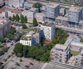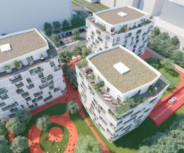 Проект уникален своей необычной структурой, которая сочетает в себе жилые и нежилые помещения, чтобы гарантировать жителям максимально возможное качество и комфорт проживания. Большинство квартир ориентированы в частный сад внутри жилого комплекса. Нежилые помещения, расположенные над главной дорогой, образуют естественный барьер между городским шумом и спокойствием вашего дома.
