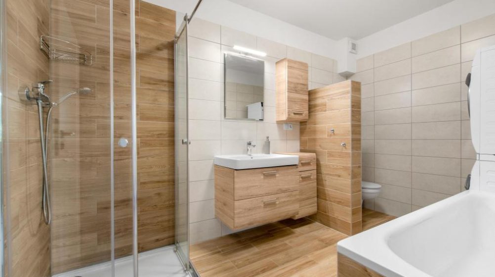 Ванная комната с ванной, душем, туалетом, прачечной и сушильной зоной