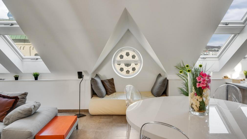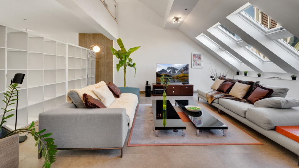 - ориентация на две стороны света, красивое светлое пространство с мансардными окнами