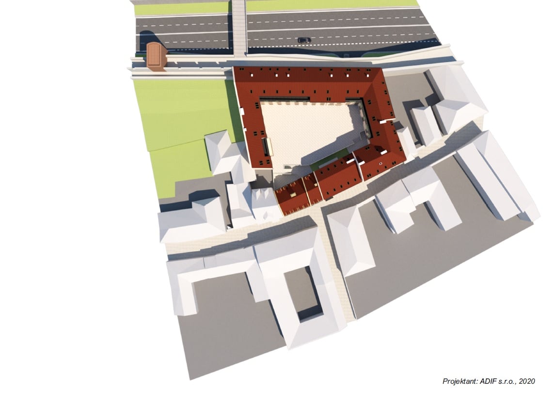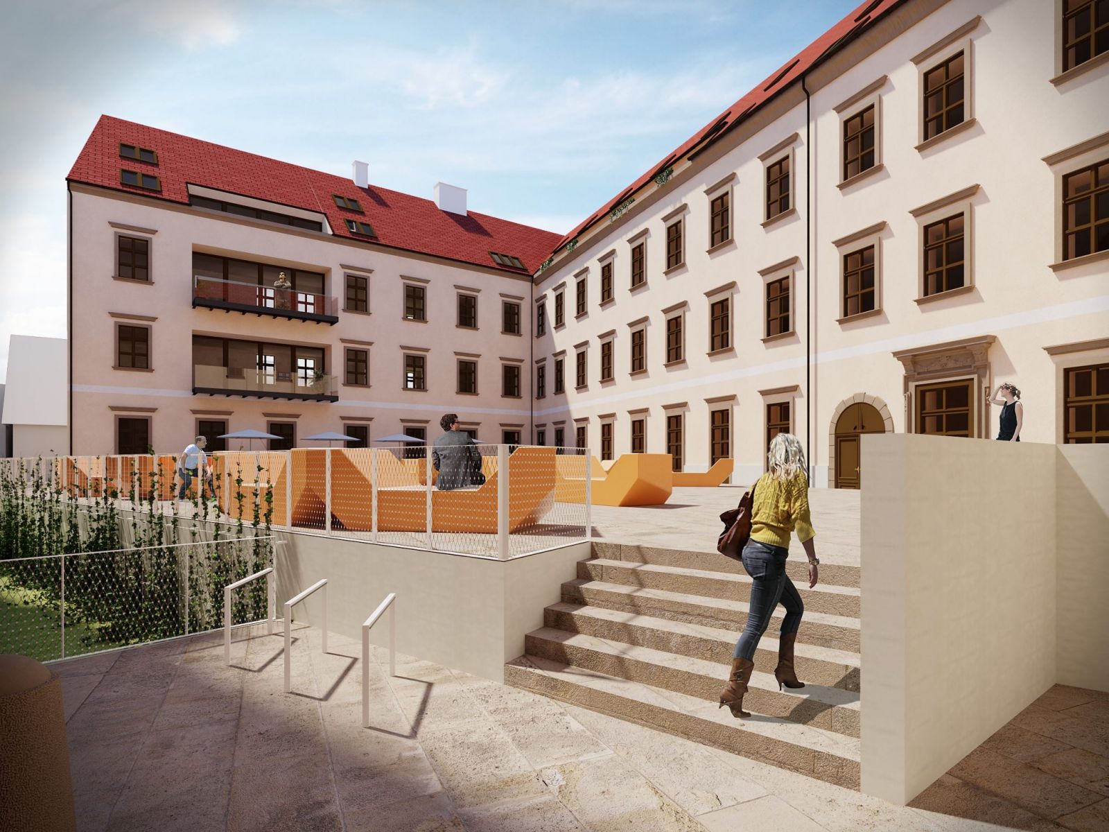 Реконструкция дворянского дворца, построенного в 1658 году. Четырехкрылый исторический комплекс долгое время находится в катастрофическом состоянии, после нескольких попыток в прошлом его восстановление наконец-то становится реальным. После реконструкции здесь будут квартиры и коммерческие помещения. Комплекс был объявлен Национальным культурным памятником в 1963 году.