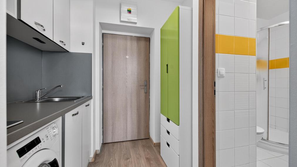 Предлагается светлая студия, расположенная на 2-м этаже 4-этажного жилого дома с лифтом, в районе Подунайске Бискупице, Братислава. Здание введено в эксплуатацию 8 лет назад.