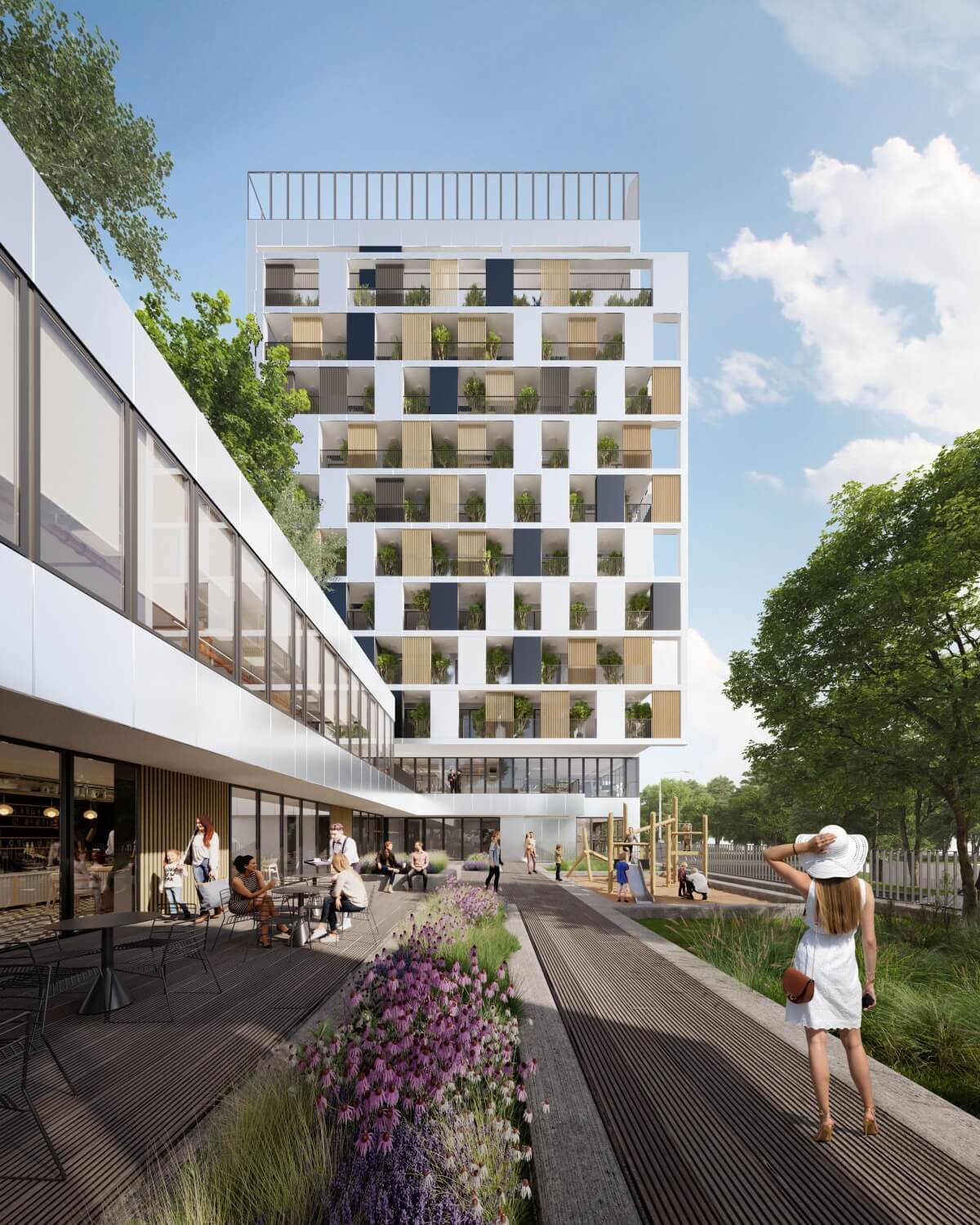 Многофункциональный проект будет построен на давно пустующем и заброшенном участке между административными зданиями времен строительства жилого комплекса.
