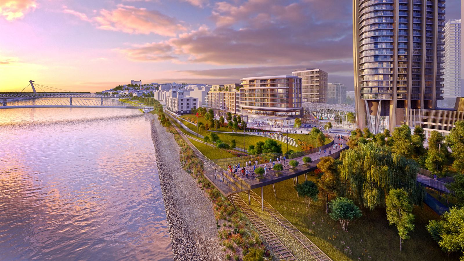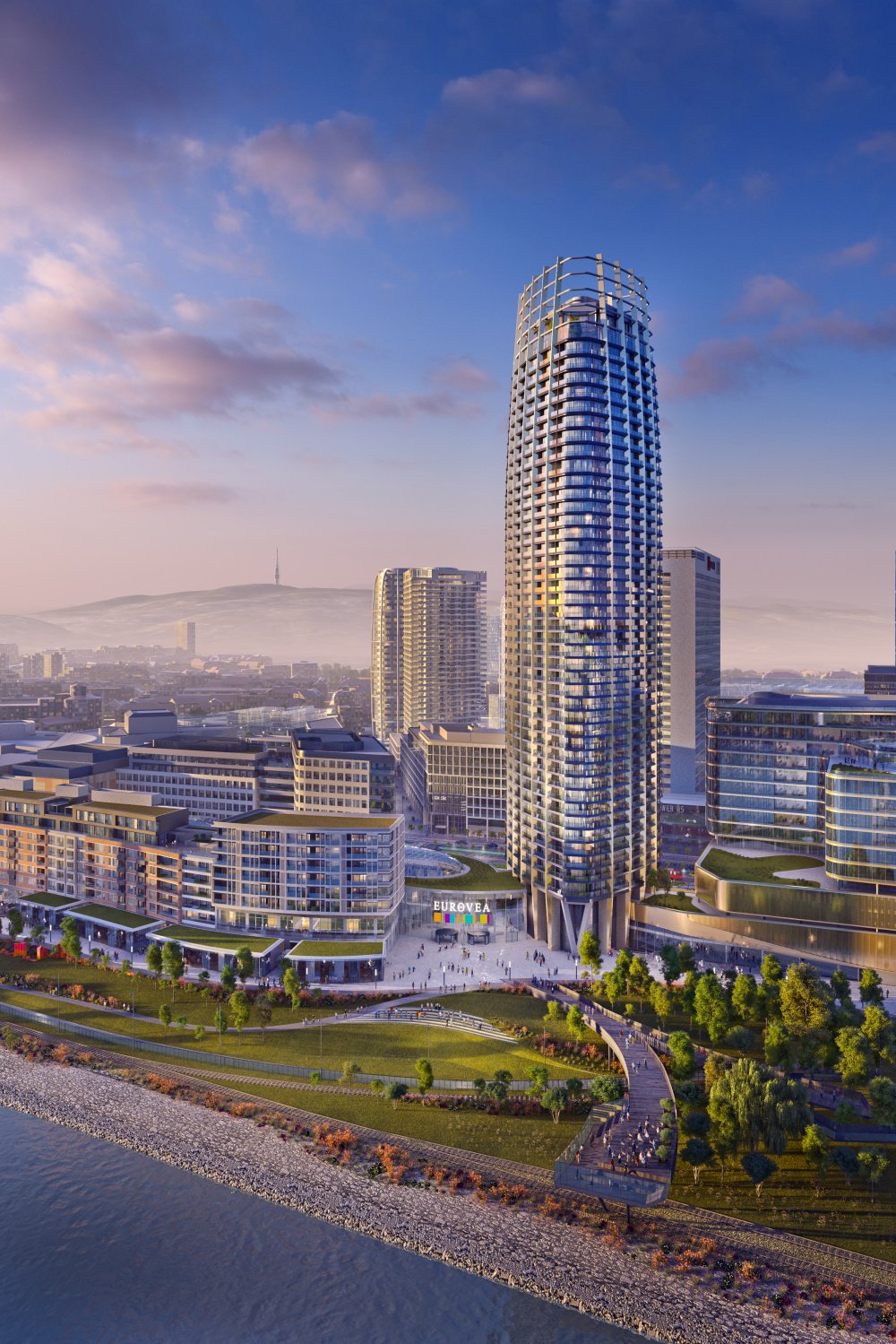 Второй этап многофункционального проекта Eurovea принесет расширение торгового центра, продление променада, новые квартиры и офисы. Частью проекта будет первый словацкий небоскреб Eurovea Tower.