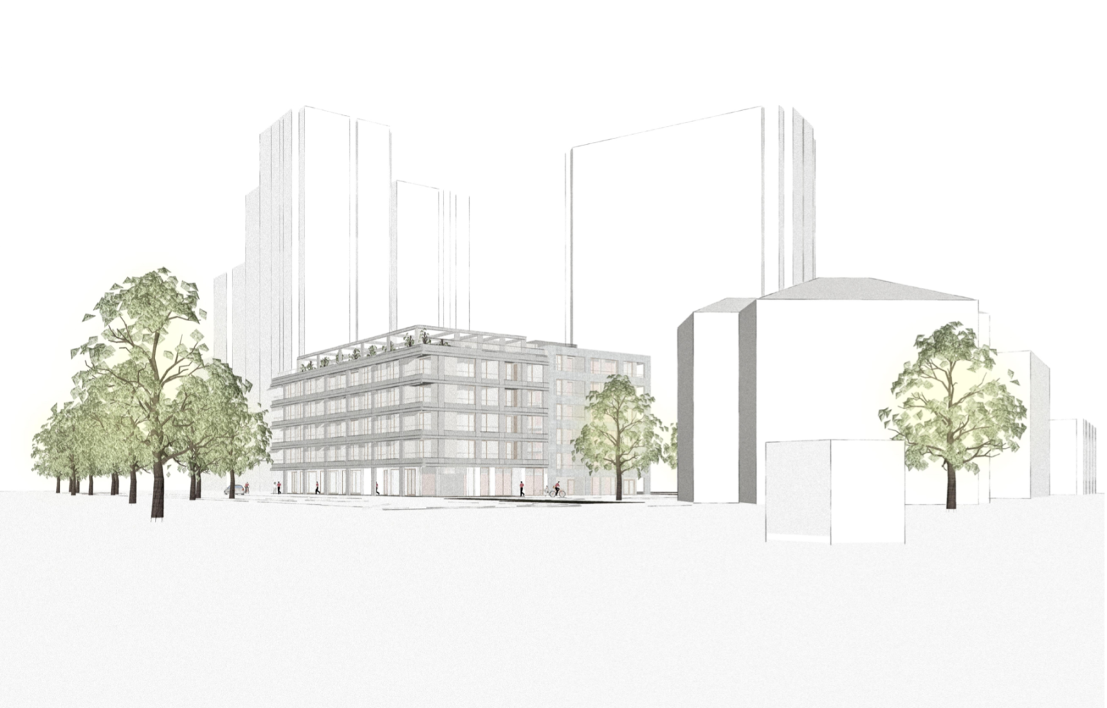 Многофункциональное здание будет построено на месте, где до 2012 года находился спортивный зал. Изначально планировалось заменить его парковкой, позже рассматривались жилые дома, а затем преимущественно офисное здание. Сегодня снова говорят о жилом доме.
