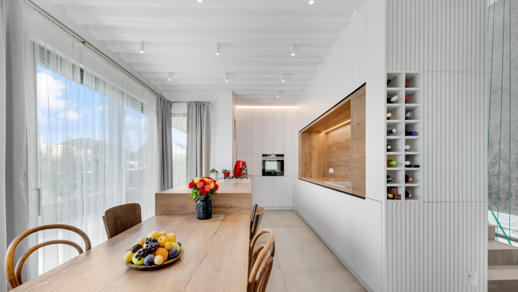Предлагается к продаже эксклюзивный семейный дом с уникальной планировкой, просторной террасой, бассейном в цокольном этаже и уютным садом. Этот дом отличается продуманным дизайном и эргономикой, выполненным с использованием высококачественных материалов, таких как ламинированные поверхности в декоре «Табачный дуб» и классический белый.