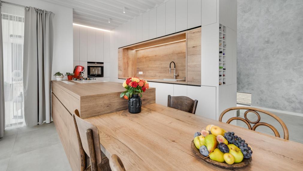 - Кухня с островом, встроенной техникой и обеденной зоной на 8 человек