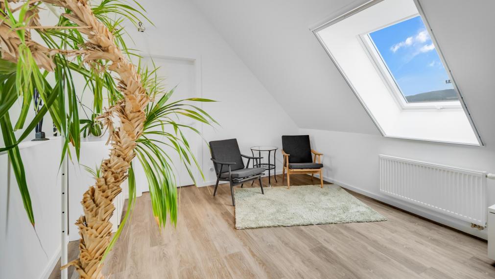 - Галерея с дизайнерской лестницей и мансардными окнами