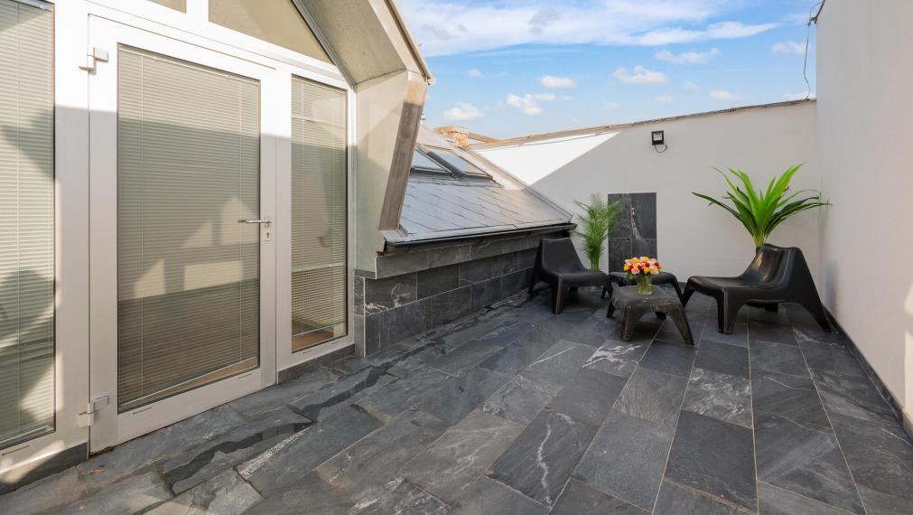 - Терраса: 20 м² на втором этаже, с видом на тихий внутренний двор, без соседей — полное уединение в центре города!