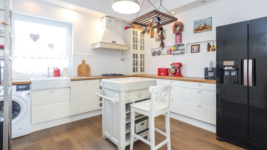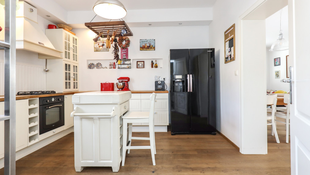 FinReal go эксклюзивно предлагает на продажу 4-комнатный семейный дом в востребованном районе Колиба. Дом был построен в 60-х годах, но благодаря полной реконструкции в 2011 году он превратился в современное и функционально спроектированное жилье для семьи. Здесь вы найдете красивую мебель в прованском стиле в сочетании с открытыми деревянными балками на верхнем этаже, стильные ванные комнаты и приятную зону отдыха в окружении зелени на террасе.