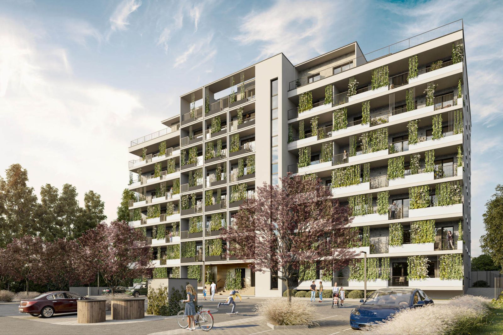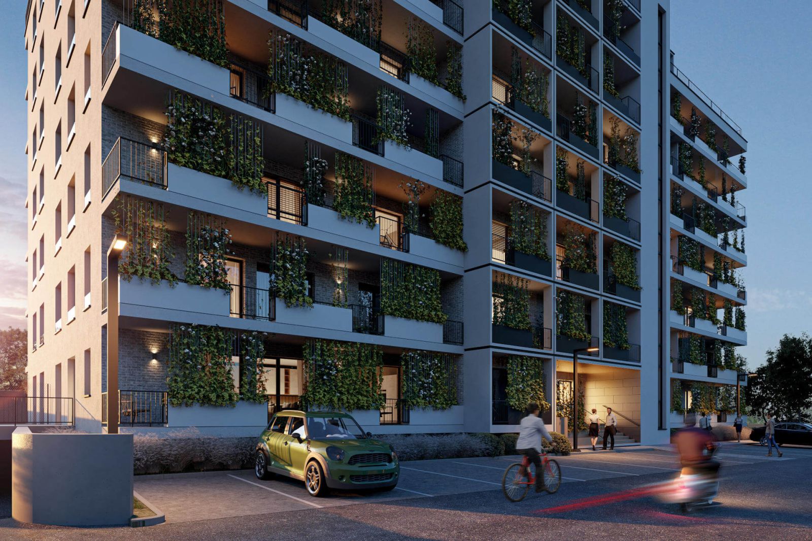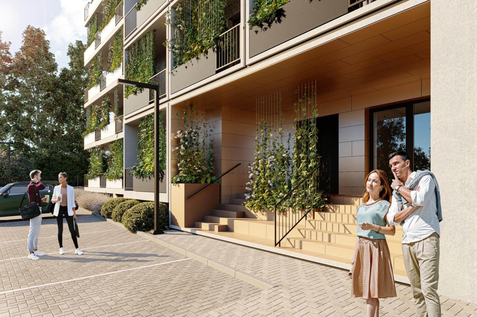 Проект жилого дома будет построен рядом с микрорайоном Красняны. Главным мотивом развития является сильное присутствие зелени в окрестностях и архитектуре здания.