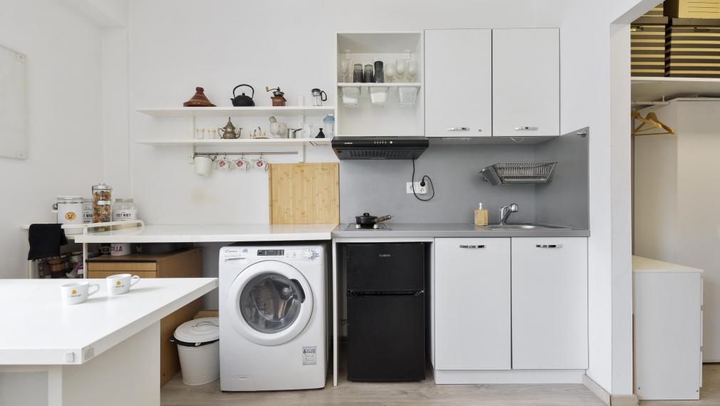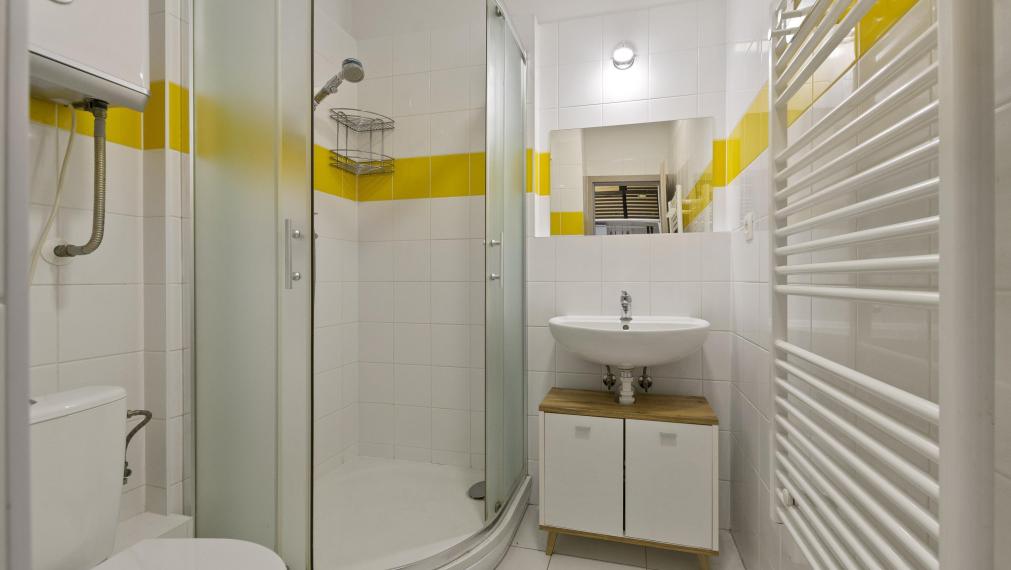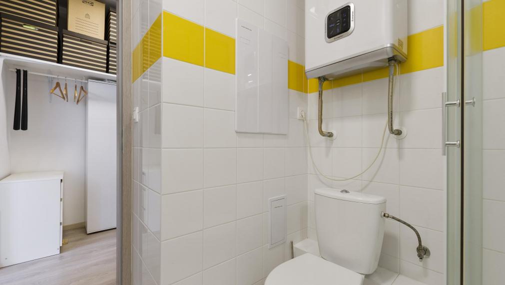 Жилая комната с кухонной зоной, прихожая, туалет, душевая кабина.