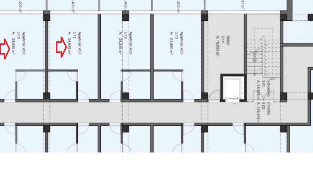 Апартаменты A57 и A58 расположены в центральной части здания с видом на горы, на 3-м этаже. План этажа в приложении.
