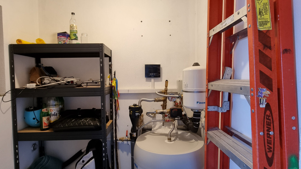 Большим преимуществом является тепловой насос Daikin с 150-литровым баком-накопителем – установлен в ноябре 2021 года, что экономит затраты на потребление при отоплении.