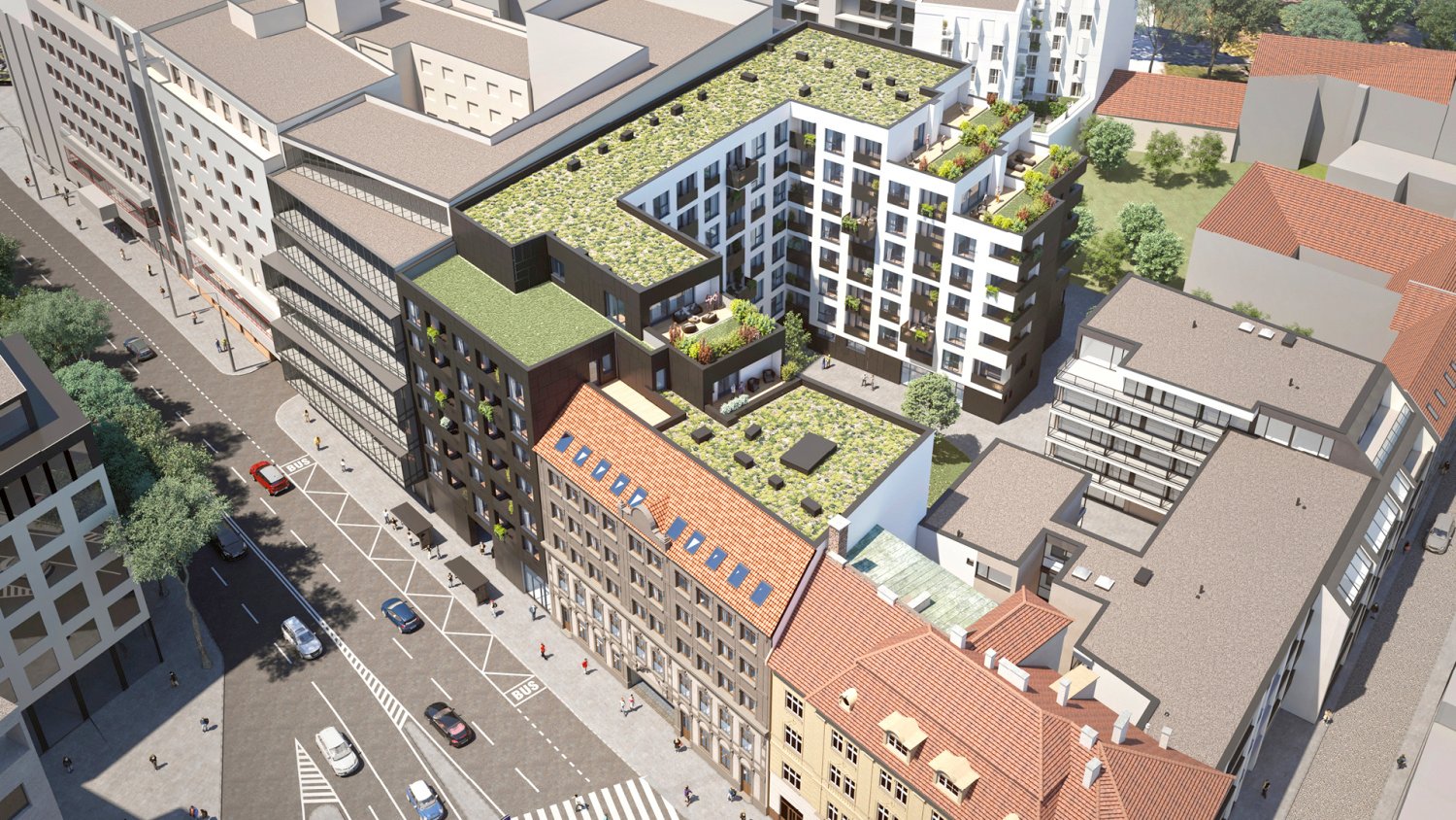 Проект с преобладающей жилой функцией заменит существующие объекты и заполнит пробел в ряду домов на Площади 1 мая. В сторону площади у проекта будет два фасада - один современный и второй, основанный на архитектуре первоначальной пекарни Kesselbauer, которая здесь находилась до недавнего времени.